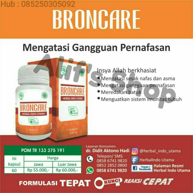 Pelbagai kelebihan apabila Anda membeli Broncare HIU Obat Jamu Herbal Sesak Nafas Asma dan Gangguan Pernafasan Herbal Indo Utama di Online Shop ini